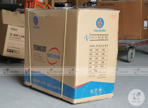 Cận cảnh bồn cầu 1 khối Viglacera V39M khi mở hộp