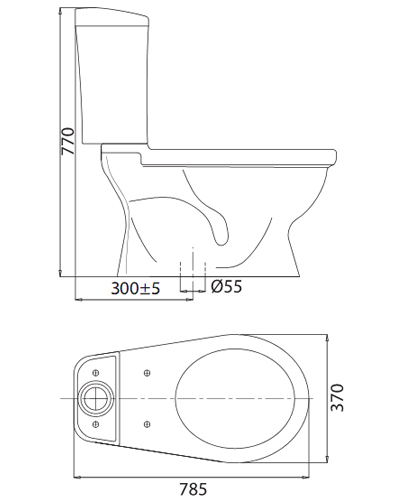 - Tâm xả: 300 ± 10 mm